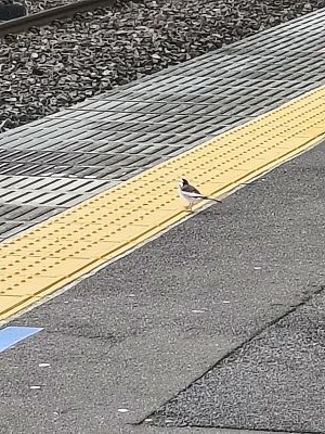ホームに元気なセキレイさん♡